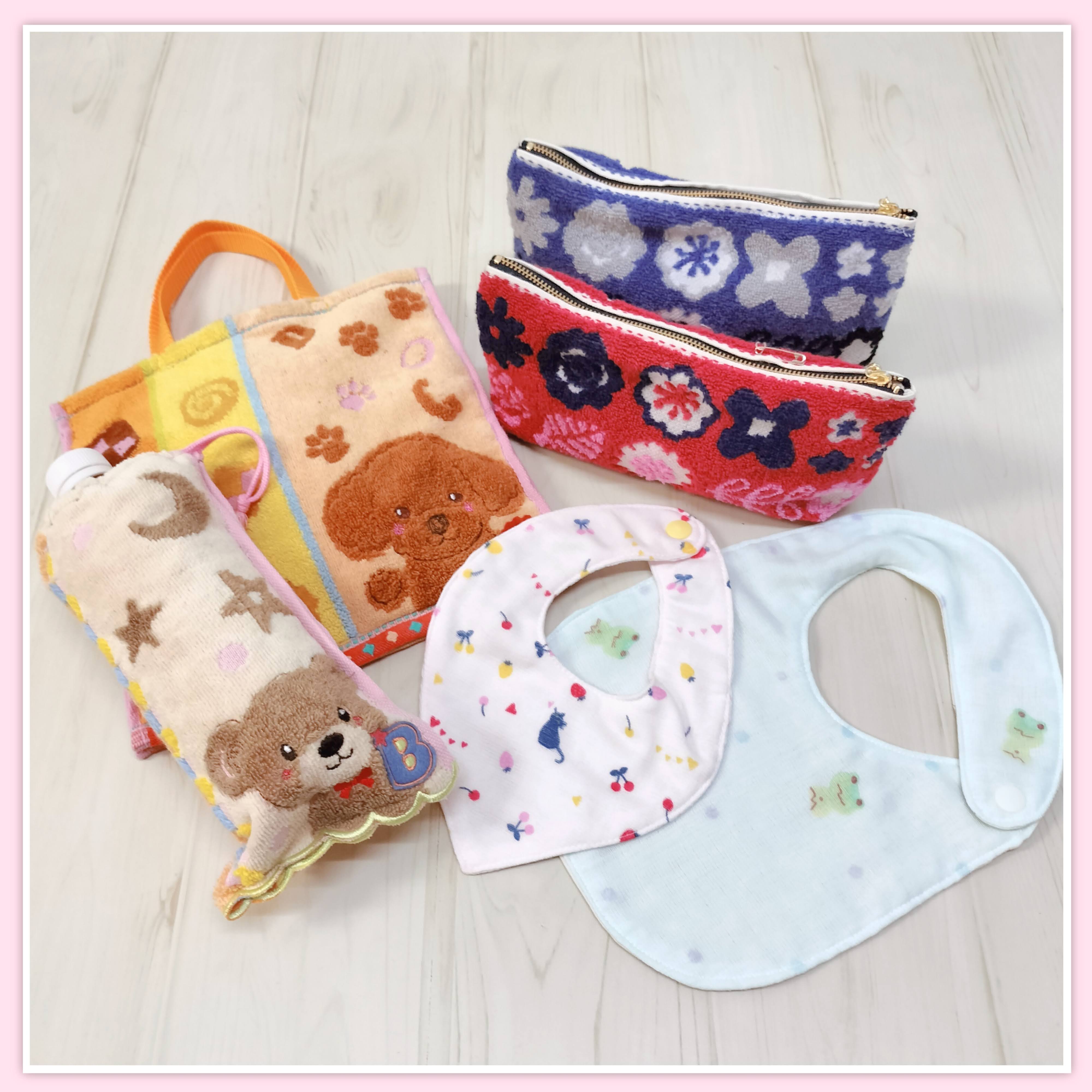 ポーチ、トートバッグ、スタイ、ペットボトルカバー、巾着等、豊富な品揃えです。